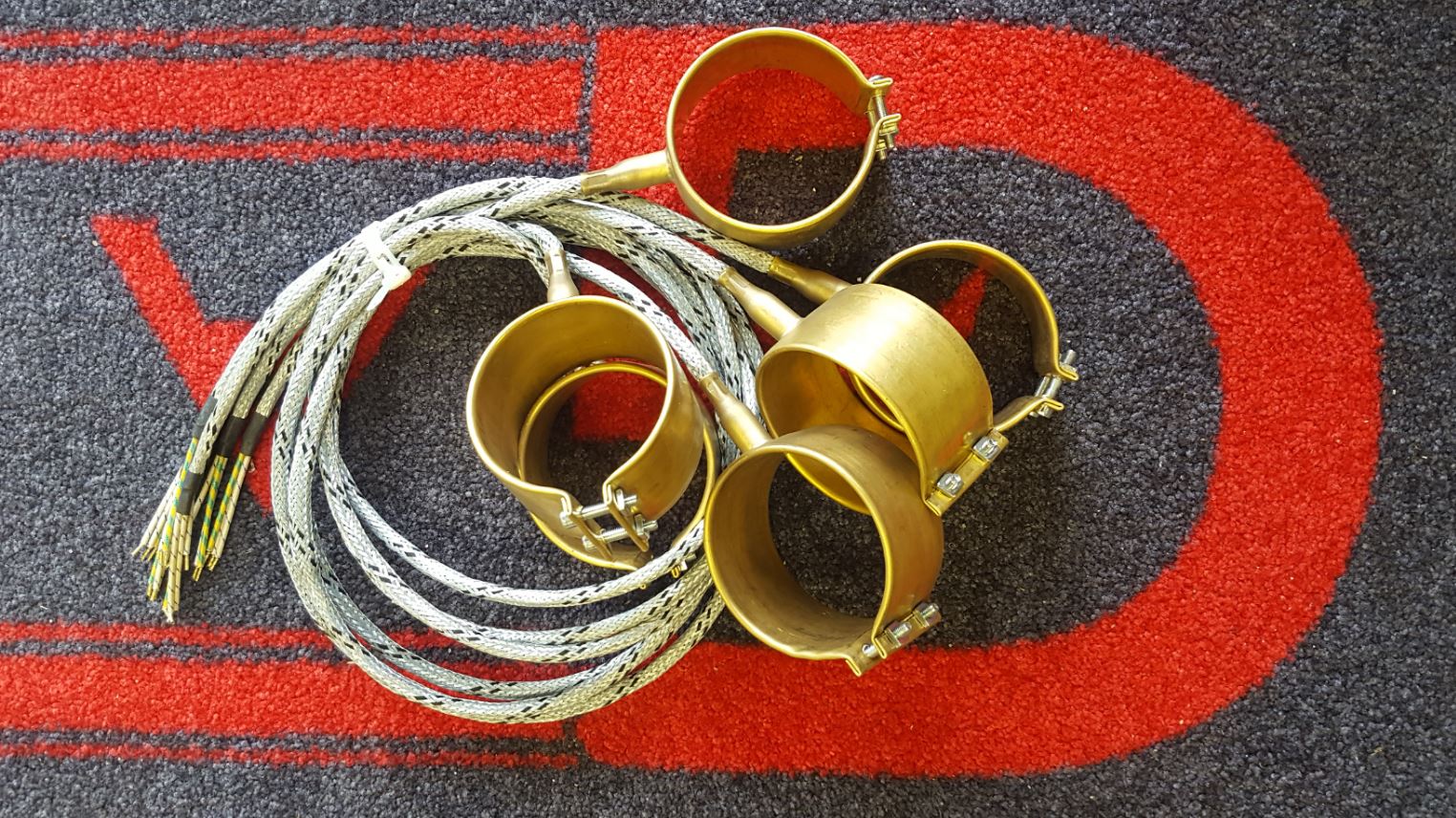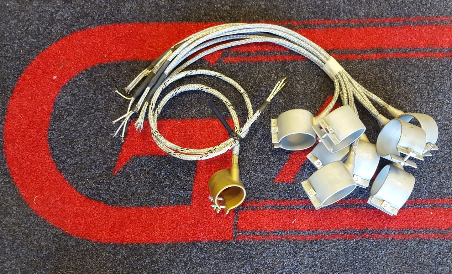 Resistenze a fascia per ugelli I riscaldatori a fascia per ugelli nascono per l’utilizzo nel settore dello stampaggio della plastica ma trovano applicazione anche in ambiti molto differenti grazie alla loro versatilità. Siamo in grado di realizzare resistenze su misura per adattarci alle esigenze dei nostri clienti ma esistono anche diverse resistenze standard per soddisfare la maggior parte delle esigenze di dimensioni e temperature di lavoro. Le nostre resistenze per ugelli sono realizzati secondo una ormai consolidata tecnologia frutto di un’esperienza pluriennale. Tutte le resistenze vengono collaudate su valore ohmico, rigidità dielettrica, dispersione di terra e resistenza di isolamento in modo da garantire un prodotto di elevata qualità. Modello Stagno Questo modello è completamente impermeabile rispetto alla plastica fusa. Le principali caratteristiche sono: Temperatura di esercizio max 320°C Cavo standard mt.1(altre lunghezze a richiesta Potenza specifica fino a 5.5W/cmq (i modelli in acciaio INOX fino a 8 W/cmq) Uscita cavo assiale a 45° (altre uscite a richiesta) Possono essere realizzate in Ottone, INOX o Ferro zincato. L’isolamento interno è realizzato con mica continua mentre l’avvolgimento è costituito da fili o piattine in Nichrome 80/20. Il cavo standard prevede 2 conduttori+ terra ed è in grado di sopportare temperature fino a 320°C. Su richiesta è possibile richiedere resistenze anche dotate di termocoppia incorporata Modello con cavi sullo spessore Questo modello è utile quando gli ingombri disponibili sono ridotti. La connessione elettrica tra cavo e filamento è realizzata all’interno dell’involucro. Le principali caratteristiche sono: Temperatura di esercizio max 350°C Cavo standard mt.1(altre lunghezze a richiesta Potenza specifica fino a 6 W/cmq (i modelli in acciaio INOX fino a 7 W/cmq) Cavi uscenti sullo spessore Possono essere realizzate in INOX o Ferro zincato. L’isolamento interno è realizzato con mica continua mentre l’avvolgimento è costituito da fili o piattine in Nichrome 80/20. Il cavo standard prevede 2 conduttori ed è in grado di sopportare temperature fino a 320°C. E’ possibile realizzare modelli anche con termocoppie incorporate o con fori e flangette porta sonda Esistono diversi modelli standard oltre a quelli già disponibili nello shop Il nostro ufficio commerciale è a disposizione per aiutarvi a identificare il codice a voi più adatto